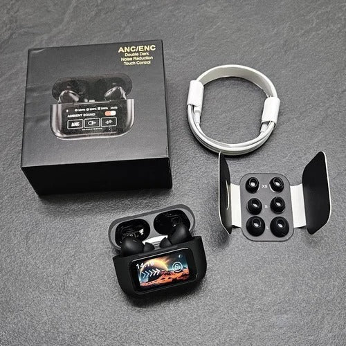 - AIPODS PRO WITH DIGITAL DISPLAYInteractive Touch Display: Quick access to battery status, track info, and notifications.